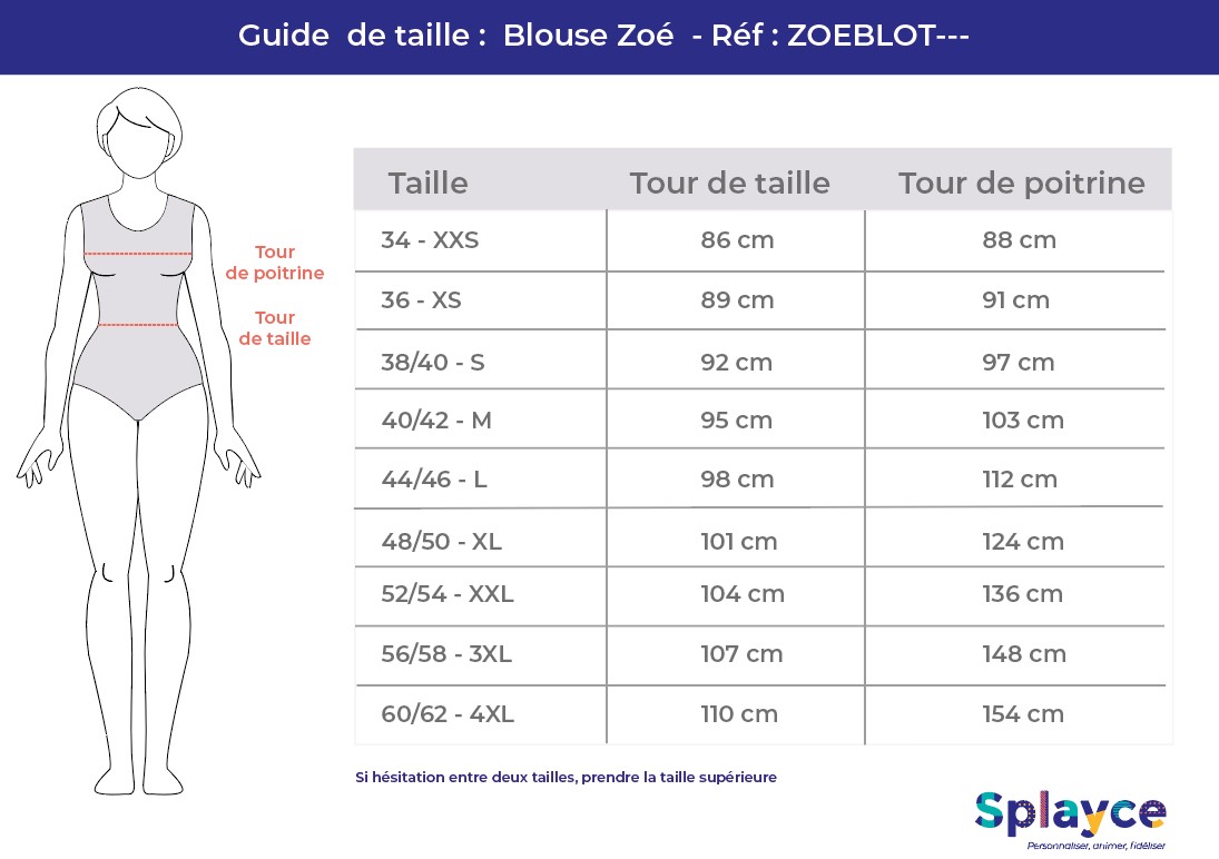 XXS – 34, XS – 36, S – 38/40, M – 40/42, L – 44/46, XL – 48/50, XXL – 52/54, 3XL – 56/58, 4XL – 60/62
